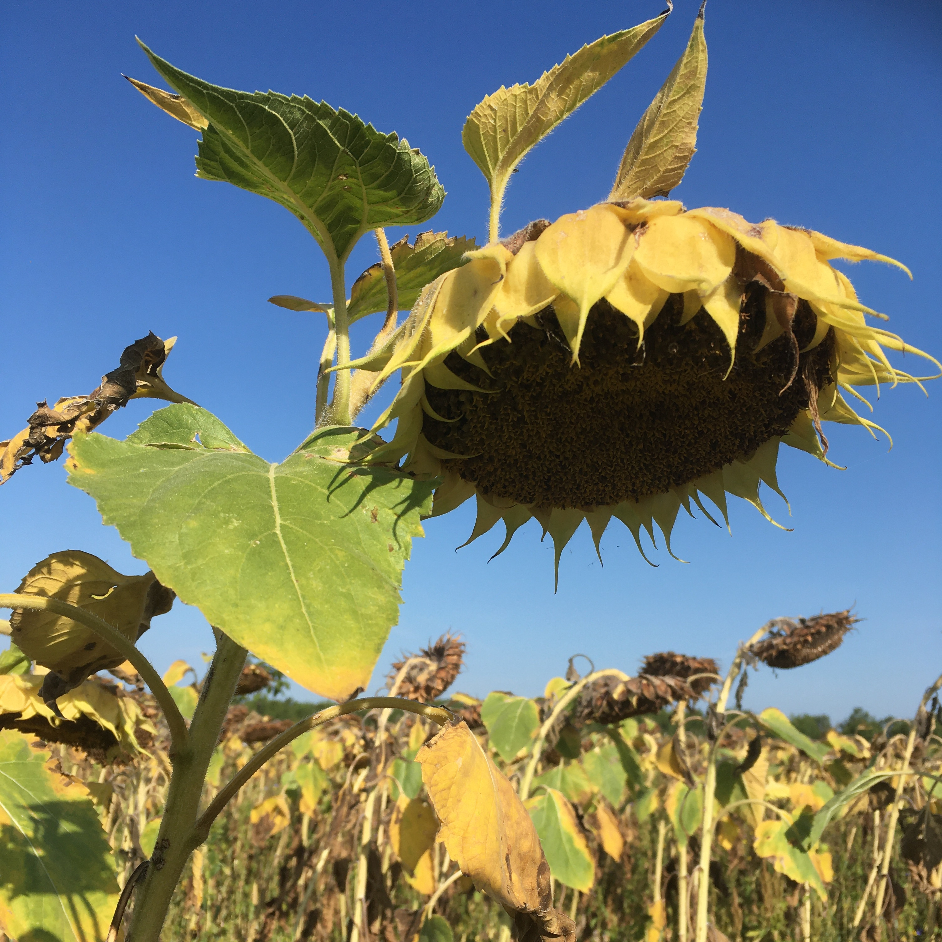 Maar toen toch maar eens op pad, uit comfortzone, omgeving ontdekken. De zonnebloem velden staan er deze tijd van het jaar treurige bij… Laten hun koppie hangen of zijn zelfs al helemaal bruin. Eerst gaf het me een triest gevoel, maar ook meteen een positieve gedachte erbij: Ik laat mijn koppie niet hangen! Auto aan de kant, om foto’s te maken. Daarbij moest ik over klein greppeltje springen en ik hoop niet dat het iemand gezien heeft, want ik landde nog op mijn knieën ook… Duh! 🤫😬
