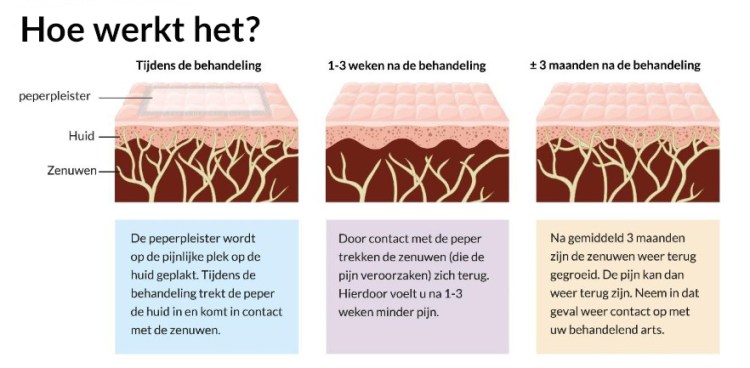 Maand geleden heb ik een behandeling gehad met een huidpleister met een hoge dosis capsaĆÆcine (8%). CapsaĆÆcine is het hete stofje in pepers, zoals in Spaanse peper, chilipeper en sambal. CapsaĆÆcine wordt via de pleister door de huid opgenomen. Het helpt zenuwcellen minder gevoelig te maken voor pijn. Wist je dat capsaĆÆcine ook in pepperspray zit? Ik heb dĆ”t gewoon vrijwillig op mijn huid laten plakken! šŖ Misschien had het met wat Hotsauce of Chili Crisp van mijn favoriete schoonzoon ook wel gewerkt! Zie ook: https://www.qudotjes.com